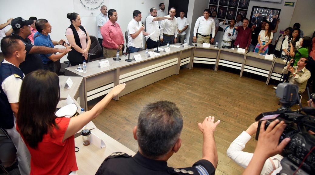 Para la reunión de toma de protesta del Comité Municipal de Protección Civil, se contó con la presencia del Secretario del Ayuntamiento Juan Fierro, la Tesorera Municipal Ana Ayala y algunos otros funcionarios municipales que toman parte activa en el citado comité, así como representantes de las distintas corporaciones policiales de los tres órdenes de gobierno que son de gran apoyo para la protección civil.