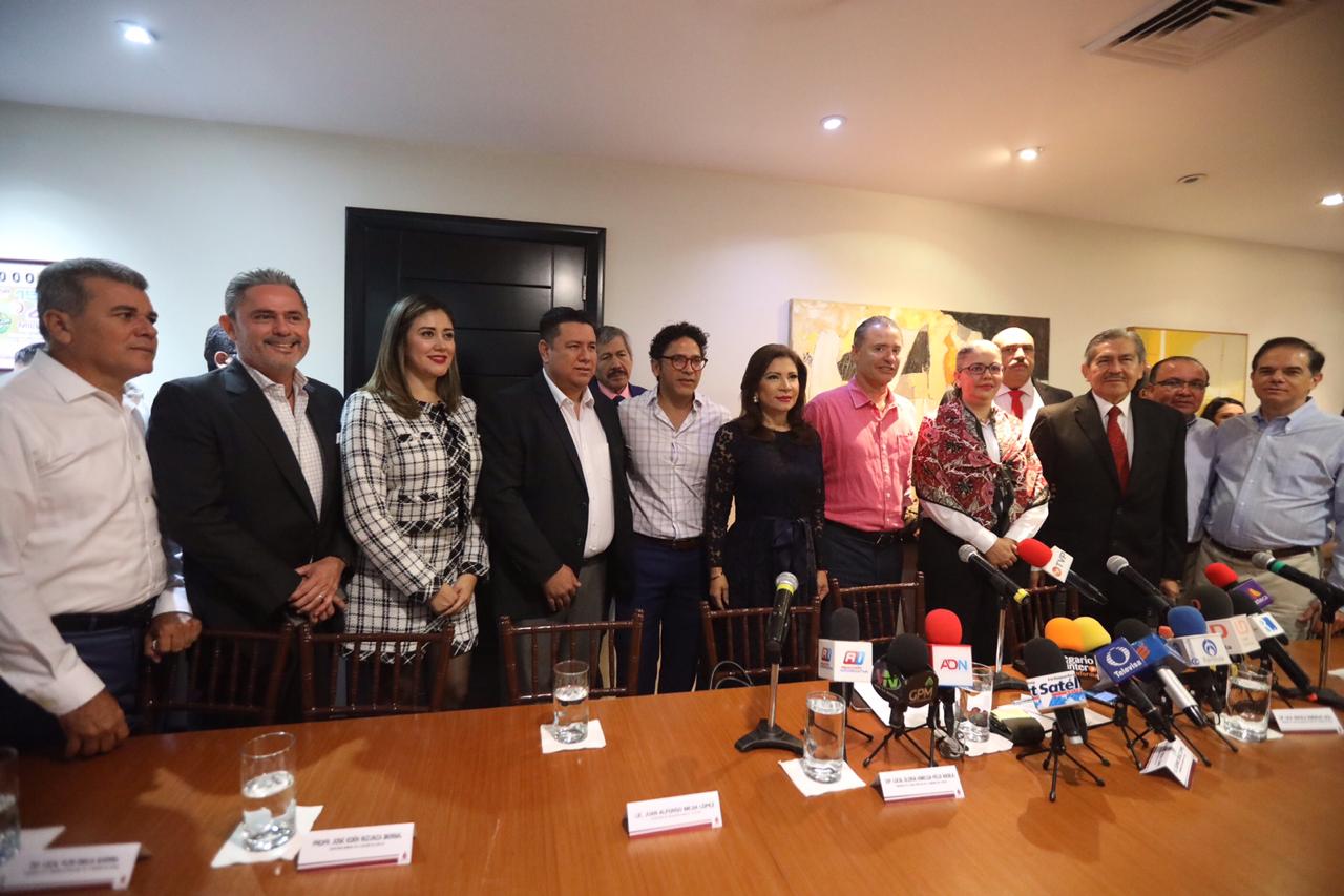 Además de las dos diputadas, también estuvieron presentes en la conferencia de prensa, realizada en la Sala de Juntas del Despacho del Ejecutivo, los diputados Mario Rafael González, Sergio Jacobo Gutiérrez, Flora Emilia Guerra, Jorge Iván Villalobos, Horacio Lora Oliva, Marco Antonio Zazueta, Edgar González Zataráin y Karla Montero, así como el secretario general de Gobierno, Gonzalo Gómez Flores; el secretario de Educación Pública y Cultura, Juan Alfonso Mejía López; el secretario de Administración y Finanzas, Carlos Ortega Carricarte, y el líder del SNTE 27, profesor Edén Inzunza Bernal.