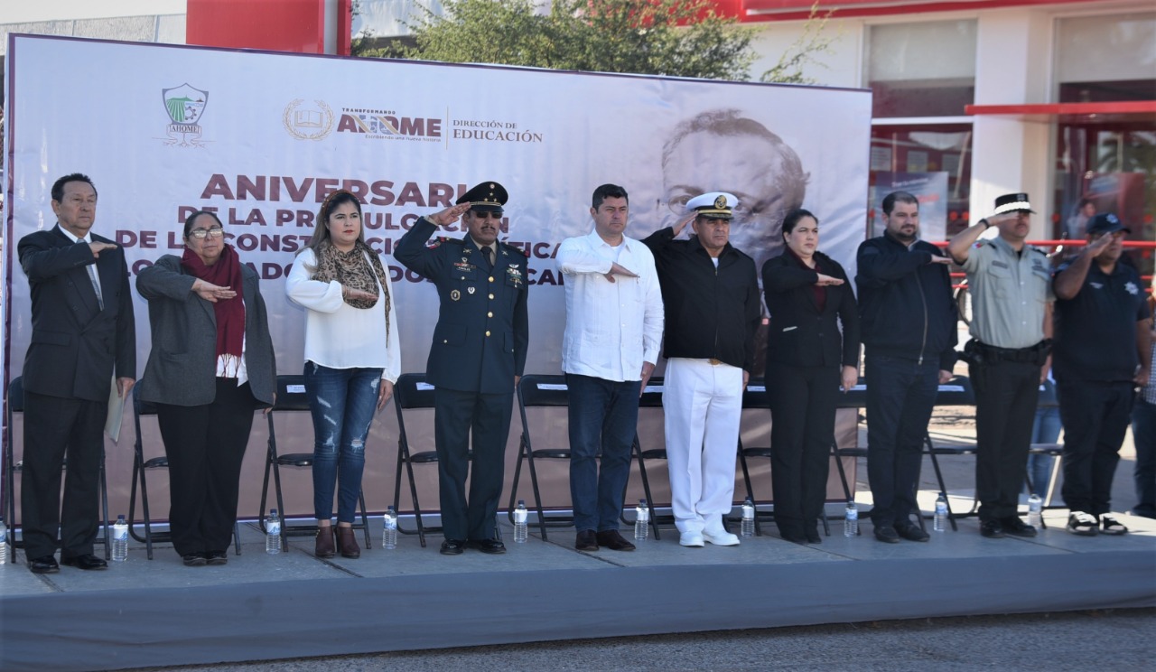 Ahí, el Profr. Benigno Corrales López, representante de la Comisión de Historia y Cultura de Los Mochis COMHISCU, fue invitado especial para emitir un discurso sobre el devenir histórico de la promulgación de la Constitución Política Mexicana de 1917, por parte del Gral. Venustiano Carranza, resaltando la visita del insigne líder mexicano a esta ciudad de Los Mochis, en pleno apogeo de la Revolución Mexicana.