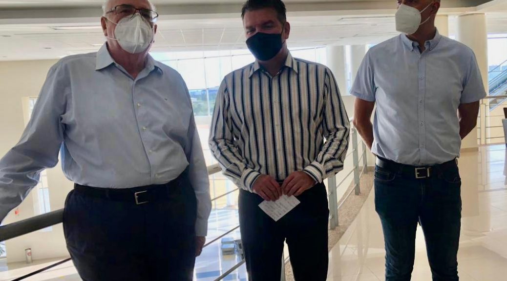 El titular de la Sectur Sinaloa recibió la visita del CEO del México Cumbre de Negocios Alfonso García Cacho, acompañados por Teresa Calles, en el Centro de Convenciones, lugar sede de la reunión, con el propósito de revisar los protocolos de sanidad que se realizan en el lugar.