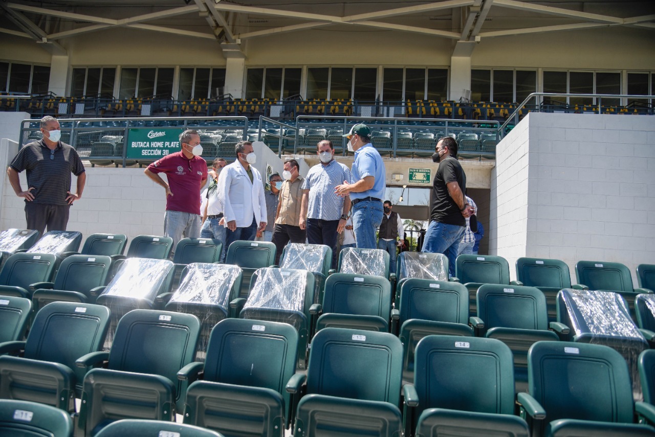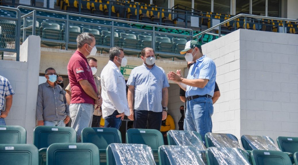 Los Mochis, Ahome, Sinaloa, a 10 de Septiembre del 2021.- Autoridades municipales y directivos del Club Cañeros, realizaron un recorrido de inspección por las instalaciones del estadio Emilio Ibarra Almada, donde se hizo una propuesta para que se cumplan los protocolos sanitarios ante el Covid-19, lo que permitirá que se pueda tener público durante los juegos de la próxima temporada de béisbol.
