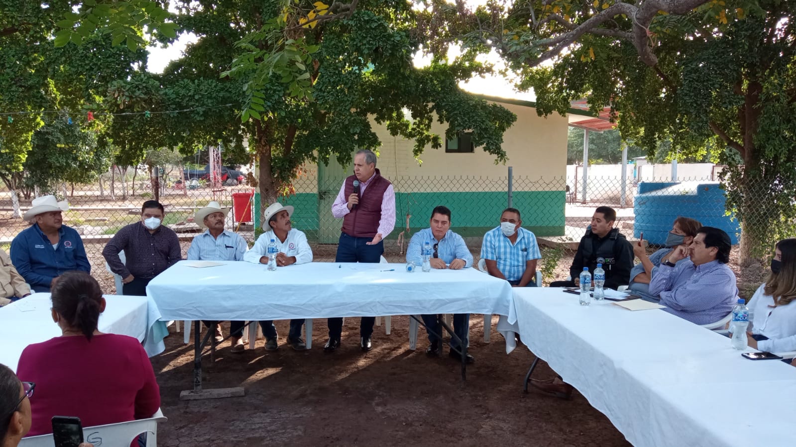 Acompañado de varios de sus funcionarios, la mañana de este lunes el Presidente Municipal de Ahome, Gerardo Octavio Vargas Landeros, sostuvo un encuentro con comisarios ejidales en la comunidad de Tabelojeca, donde le plantearon la problemática del agua potable.