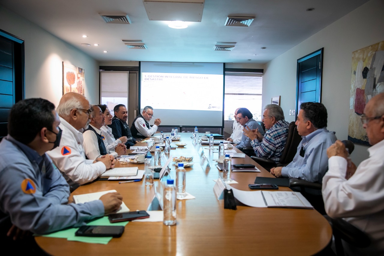 El gobernador Rocha estuvo acompañado por el secretario general de Gobierno, Enrique Inzunza Cázarez; por el secretario de Obras Públicas, José Luis Zavala Cabanillas; y por el director del Instituto Estatal de Protección Civil, Héctor Modesto Félix Carrillo, mientras que la coordinadora de PC, Laura Velázquez, asistió con sus principales colaboradores.