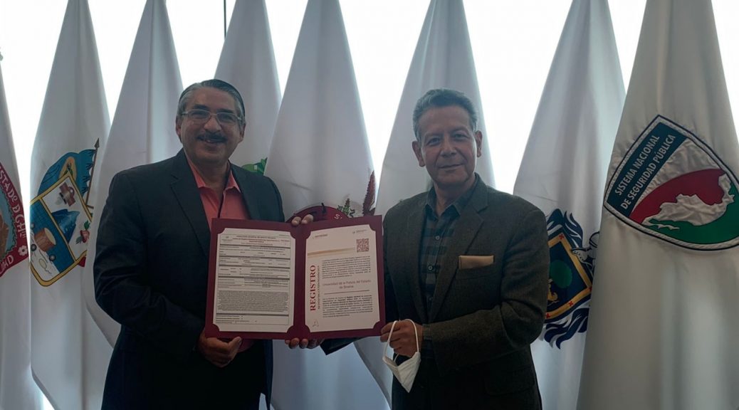 Ciudad de México, a 8 de mayo del 2022.- La Universidad de la Policía (Unipol) recibió de manos del Rector, Óscar Fidel González Mendívil, el registro oficial por parte del Secretariado Ejecutivo del Sistema Nacional de Seguridad Pública (SESNSP ), lo que le da al ente gubernamental; la formalidad como instancia capacitadora de los Cursos de Formación Inicial y Formación Continua.