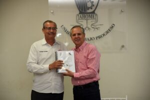 El documento lo entregó el Delegado del ICES en la Zona Norte Jesús López Lugo, al Alcalde, quien a su vez lo entregó al Presidente la Comisión Revisora que se integró durante la reunión, recayendo la representación en el Presidente del Colegio de Valuadores Filiberto Ayala Bobadilla.