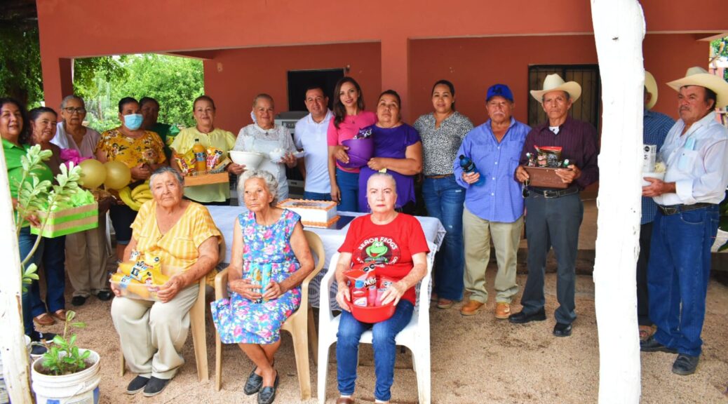 La presidenta municipal María Elizalde Ruelas y su esposo Guillermo “Memo” Galindo Castro presidente del Sistema DIF, estuvieron en la comunidad de La Misión, perteneciente a la alcaldía central de Mocorito; en donde tuvieron la oportunidad de acompañar a los integrantes del “Club Lira de Oro” del Inapam para celebrar el Día del Abuelo.
