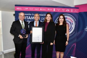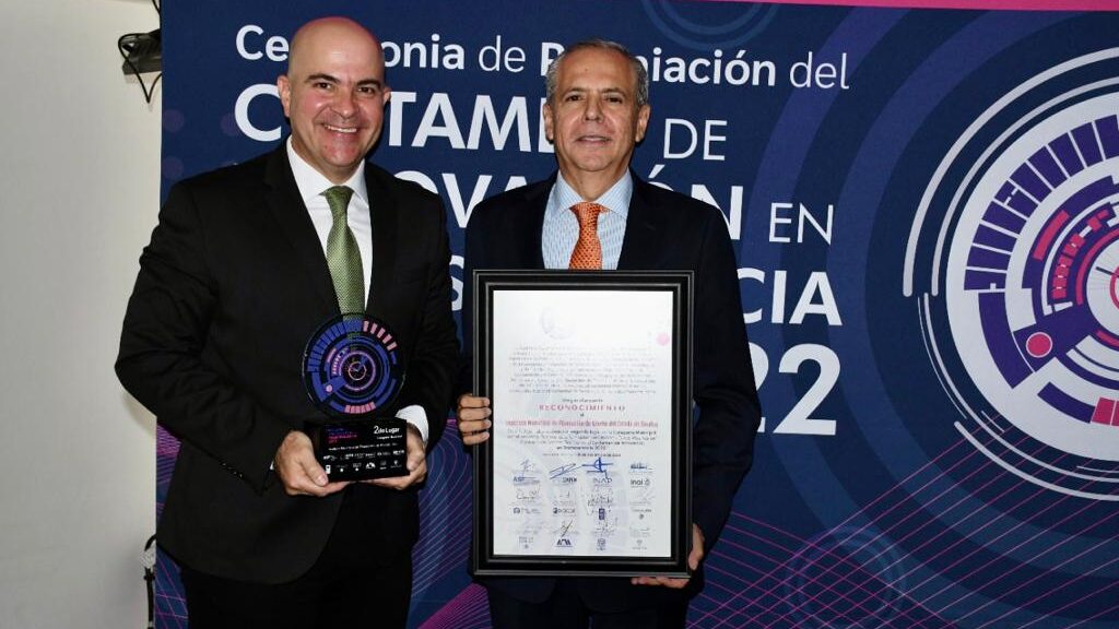 La ceremonia de premiación del certamen de Innovación en Transparencia 2022, se llevó a cabo en el auditorio Alonso Lujambio del INAI, en la CDMX, donde el Alcalde Gerardo Vargas Landeros, estuvo presente para recibir el distintivo, de manos de Josefina Román Vergara, Comisionada del Instituto Nacional de Transparencia, Acceso a la Información y Protección de Datos Personales, y, Roberto Moreno Herrera, titular de la Secretaría Ejecutiva del Sistema Nacional Anticorrupción (SESNA).