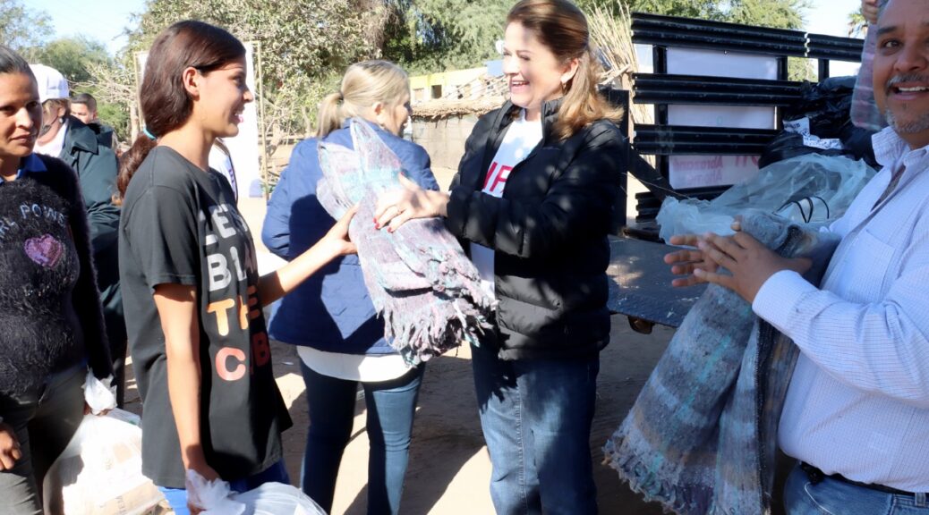 Los Mochis Sin. 13 de enero 2023.- Cobijas, ropa y despensas con diferentes productos se entregaron entre los habitantes de El Peluchín y El Tule, comunidades de la Sindicatura Higuera de Zaragoza que tras estudios socioeconómicos fueron incluidas en la agenda de Abrazando Ahome que contempla la entrega de apoyos durante la época de bajas temperaturas.