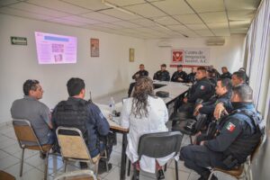Lagunes Inclán, externó que la idea es capacitar a grupos pequeños de policías, por lo que en esta ocasión serán 22 elementos los que se capacitarán de forma progresiva, con una sesión semanal durante un mes, con el objetivo de alcanzar a todo el personal, incluyendo a los miembros del departamento de tránsito y algunas áreas administrativas relacionadas con la parte legal que surge de la atención de estos casos.
