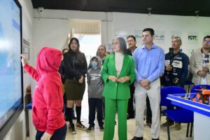 En agradecimiento al apoyo recibido, alumnos de la primaria obsequiaron al alcalde y a Lupita López su nombre impreso en 3D que ellos mismos elaboraron en el aula STEM, posteriormente los invitaron a dicho espacio, en donde explicaron parte de los trabajos que realizan a diario para mejorar su educación.