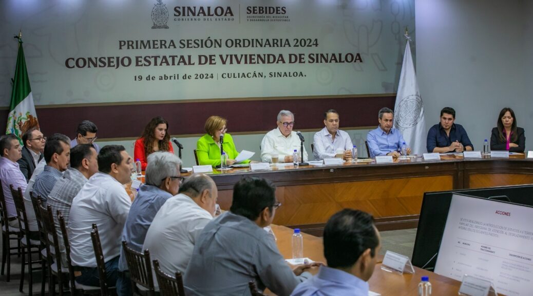 Culiacán, Sinaloa, a 19 de abril de 2024.- El gobernador Rubén Rocha Moya encabezó la Primera Sesión Ordinaria 2024 del Consejo Estatal de Vivienda del Estado de Sinaloa, que se realizó con el propósito de aprobar el Programa Estatal de Vivienda de este año, para el cual ya se autorizaron los recursos necesarios por parte del Gobierno del Estado.