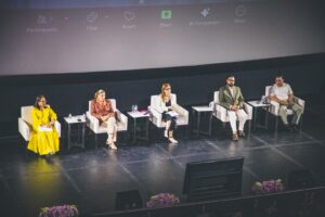 Moderó el conversatorio Lucía Mimiaga León, Presidenta del Comité Coordinador del Sistema Estatal y Municipal Anticorrupción del Estado de Sinaloa y Comité de Participación Ciudadana.
