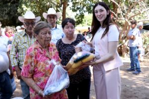 Durante su intervención, la presidenta del Sistema DIF Ahome expresó: “Hoy nos encontramos en El Ranchito, donde venimos con nuestro programa de Cuaresma DIFerente a entregar el pescado y toda la verdura que nos donaron. Muchísimas gracias a todos los que nos apoyaron con sus donaciones, es un gusto estar aquí”.