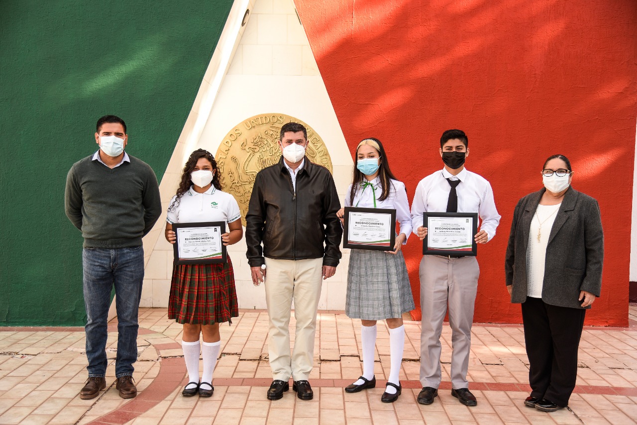 El Presidente Municipal Billy Chapman entregó reconocimientos a los alumnos Patricia Palafox, Alejandra Martínez López, del COBAES 02, y Anthony Meléndrez Acosta, del COBAES 03, quienes fueron los ganadores del Concurso Municipal de Oratoria, mismos que también recibieron como premio 2 mil 500 pesos, mil 500 y mil pesos, respectivamente.